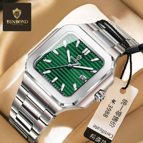 ساعت مچی عقربه‌ای کوارتز مردانه بین باند مدل اسپرت سه موتور فعال کرنوگراف بند استیل قفل مخفی کد B1
