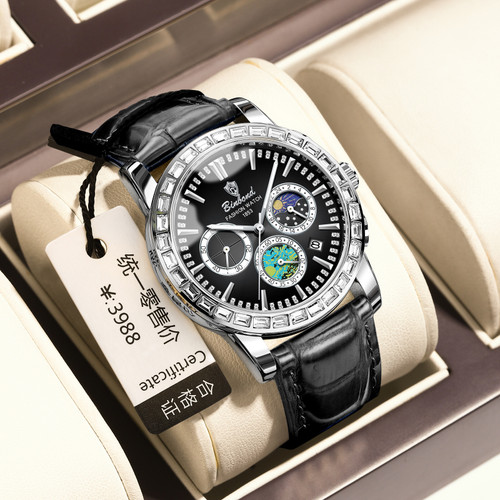 ساعت مچی عقربه‌ای کوارتز مردانه بین باند مدل اسپرت لوکس سه موتور فعال کرنوگراف بند چرم کد J2