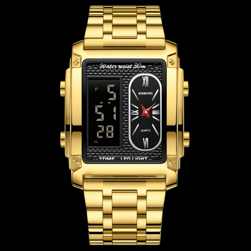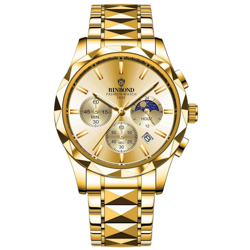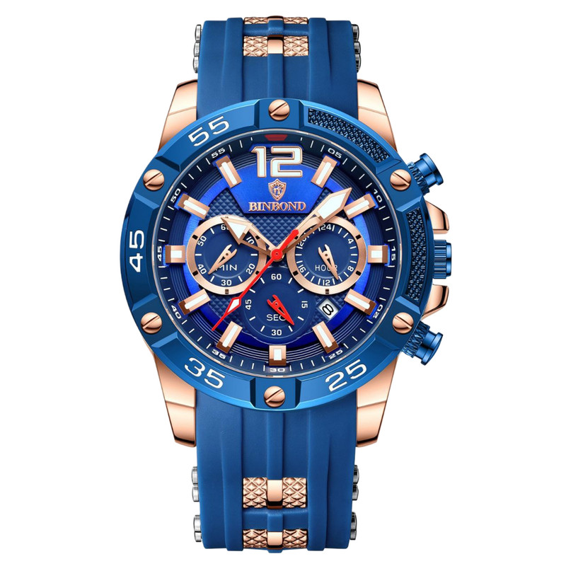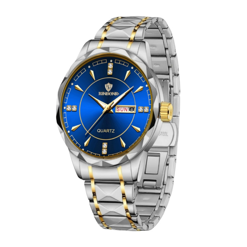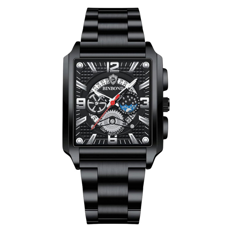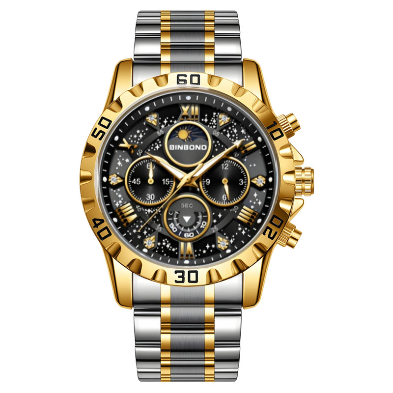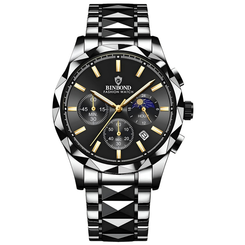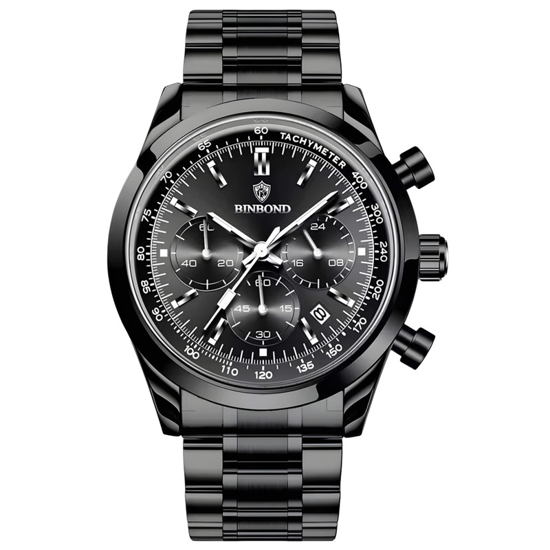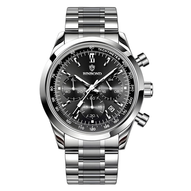 ساعت مچی عقربه‌ای کوارتز مردانه بین باند مدل اسپرت سه موتور فعال کرنوگراف بند استیل قفل مخفی کد B1