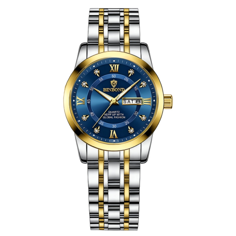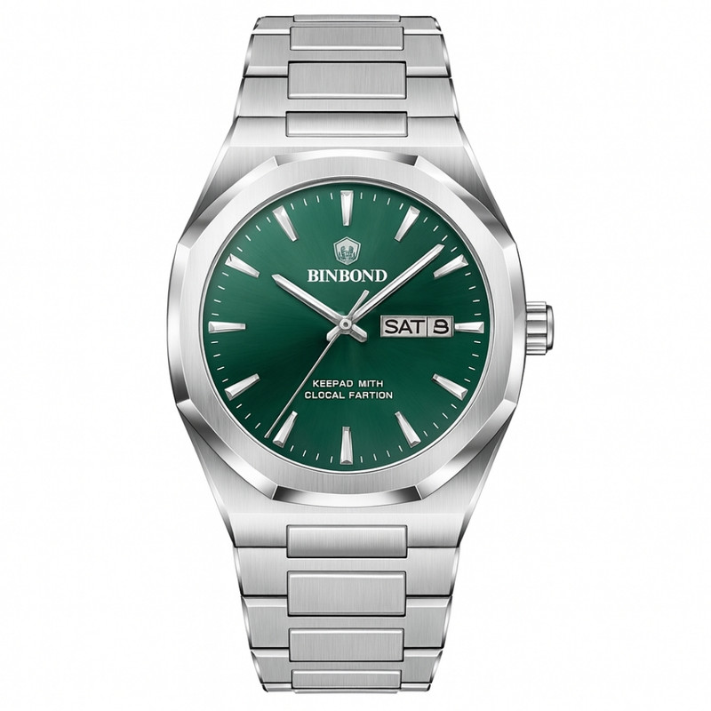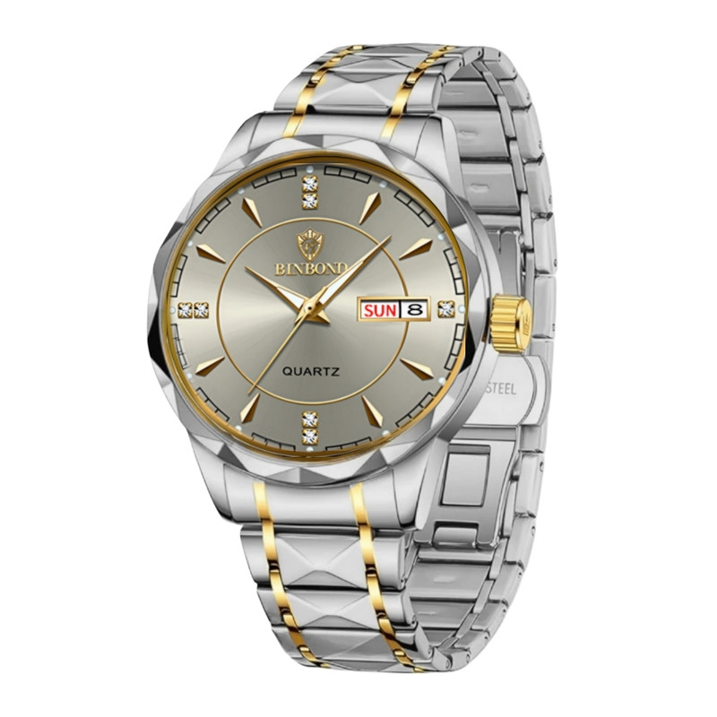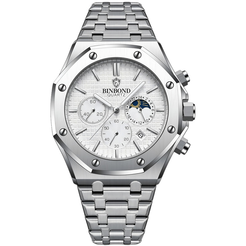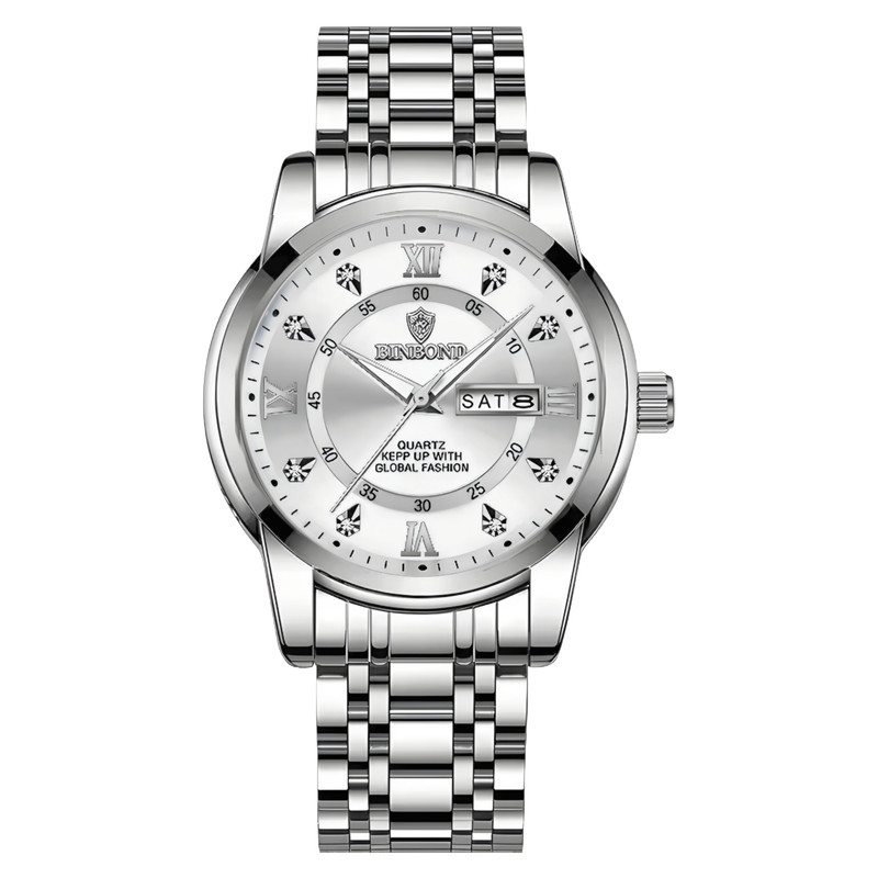 ساعت مچی عقربه‌ای کوارتز مردانه بین باند مدل کلاسیک سه موتور فعال کرنوگراف بند استیل کد B1