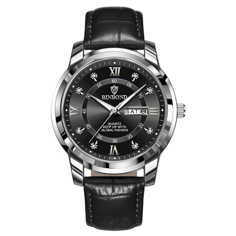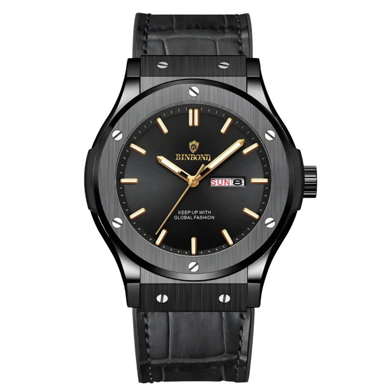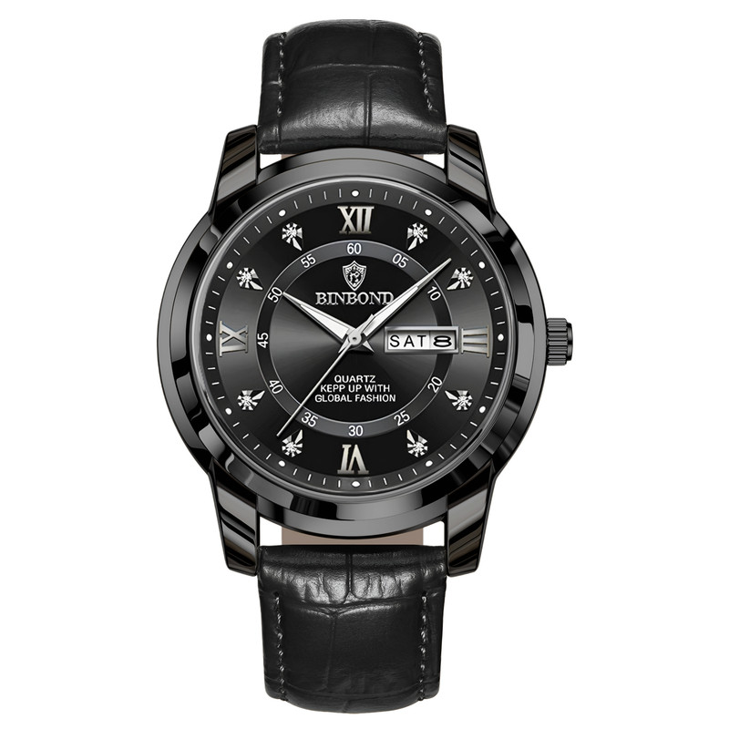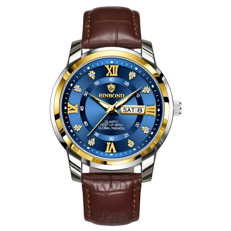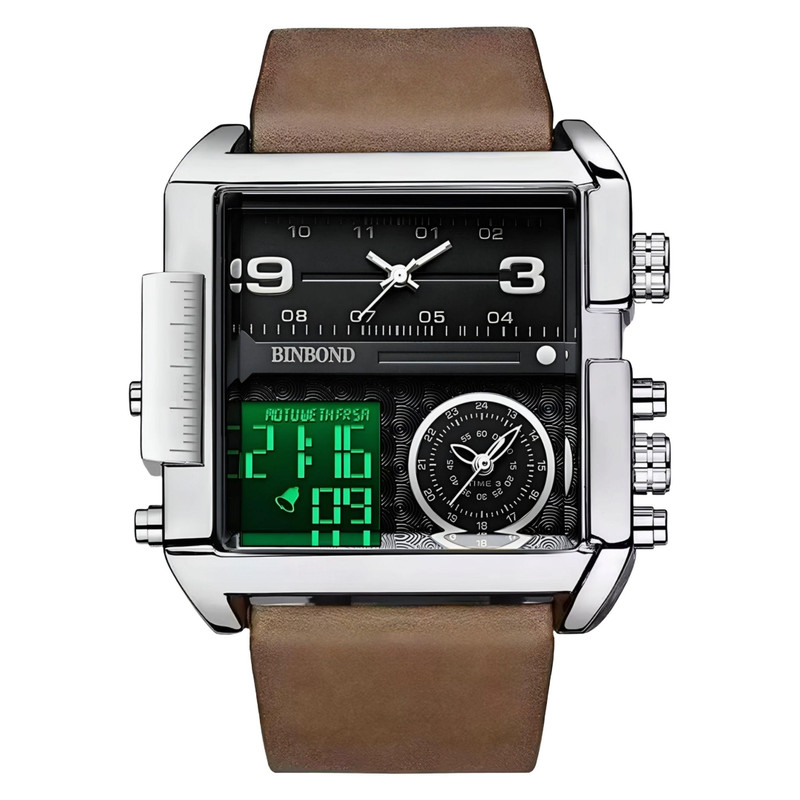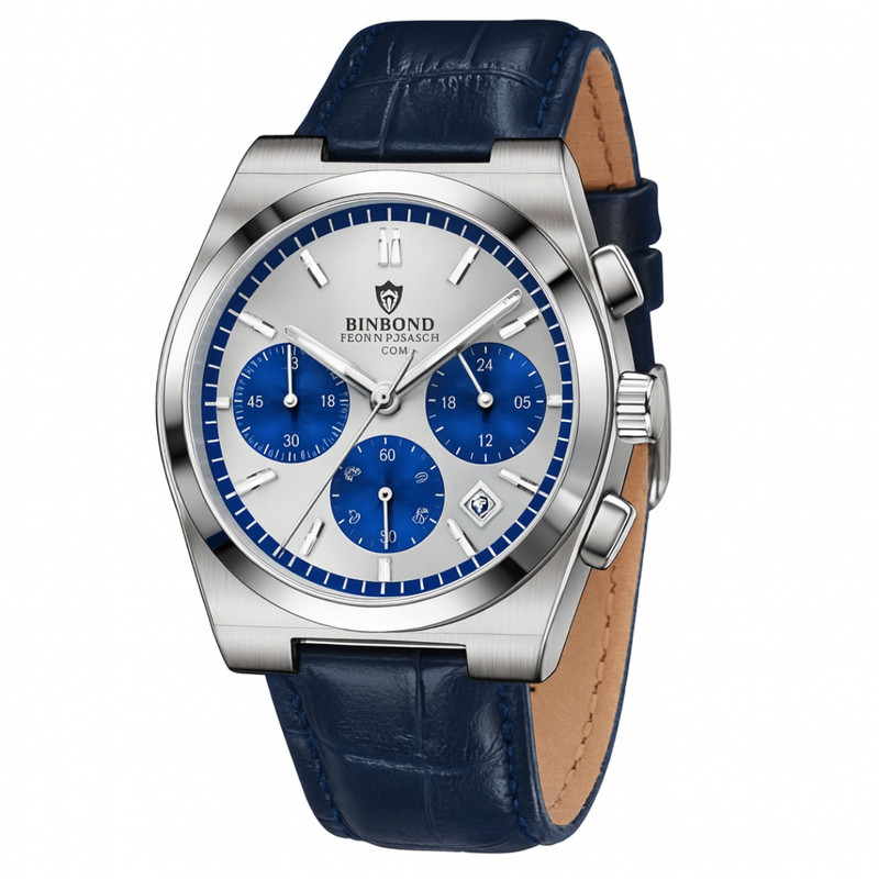 ساعت مچی عقربه‌ای کوارتز مردانه بین باند مدل اسپرت لوکس سه موتور فعال کرنوگراف بند چرم کد BN1