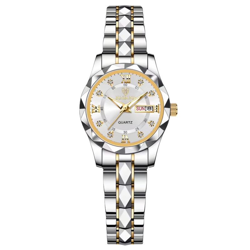 ساعت مچی عقربه‌ای کوارتز زنانه بین باند مدل لوکس کلاسیک دی دیت بند طرح بافت قفل مخفی کد ۸