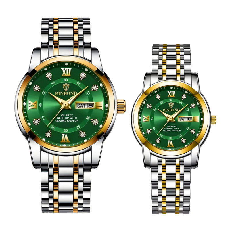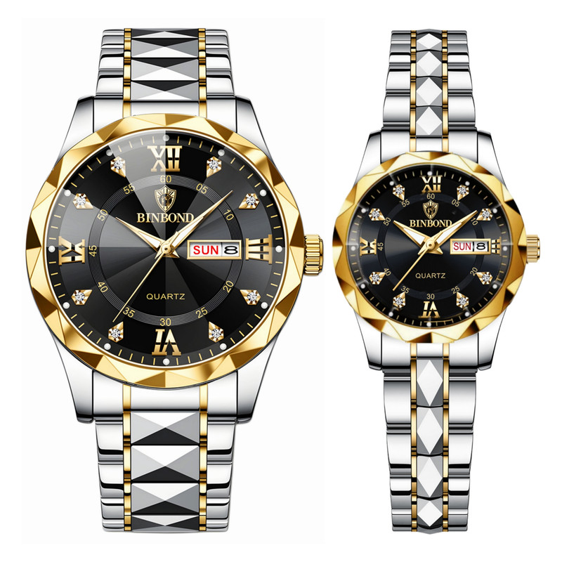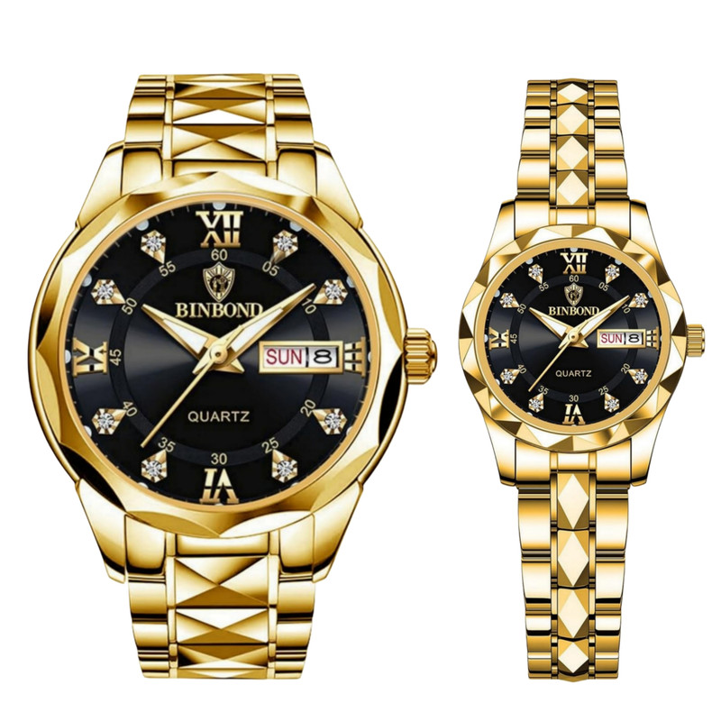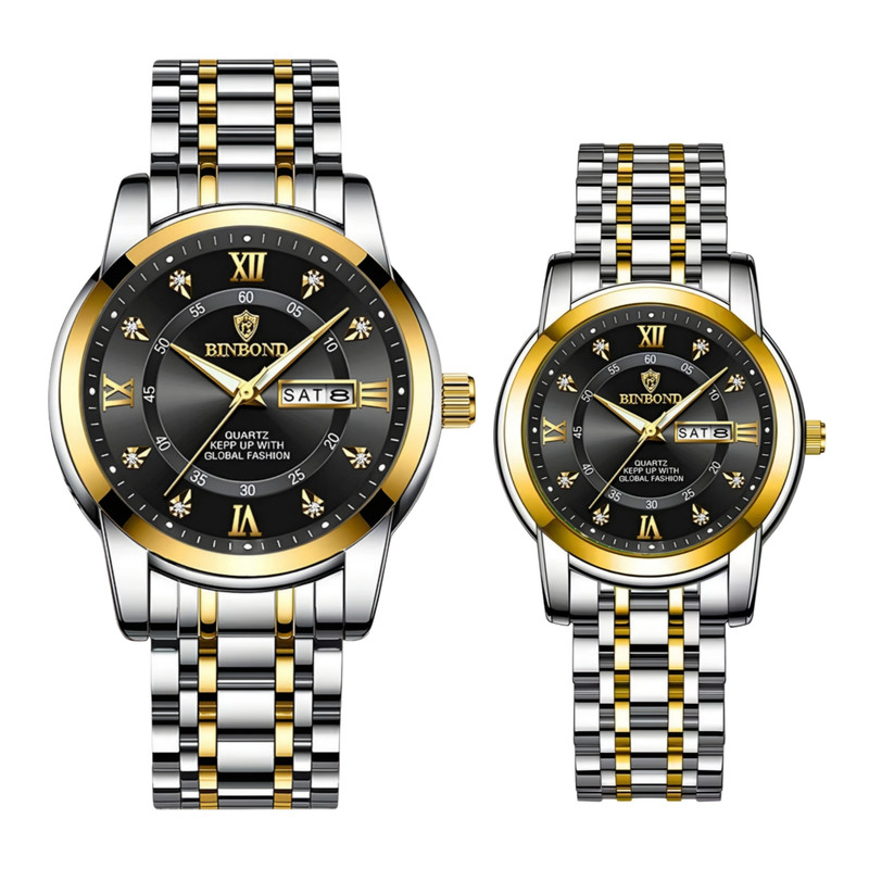 ست ساعت مچی عقربه‌ای کوارتز زنانه و مردانه بین باند مدل لوکس کلاسیک دی دیت بند کد 9