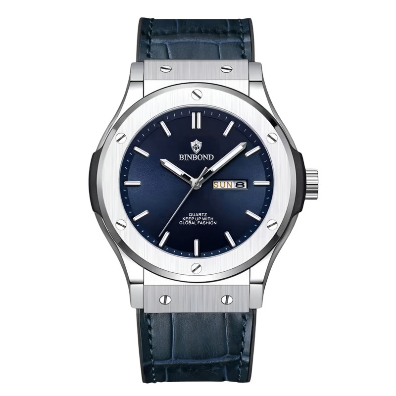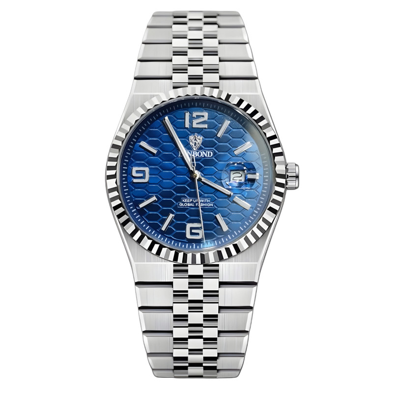 ساعت مچی عقربه‌ای کوارتز مردانه بین باند مدل کلاسیک اسپرت دی دیت بند استیل طرح بافت کد B.4