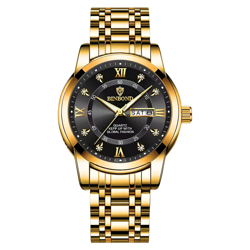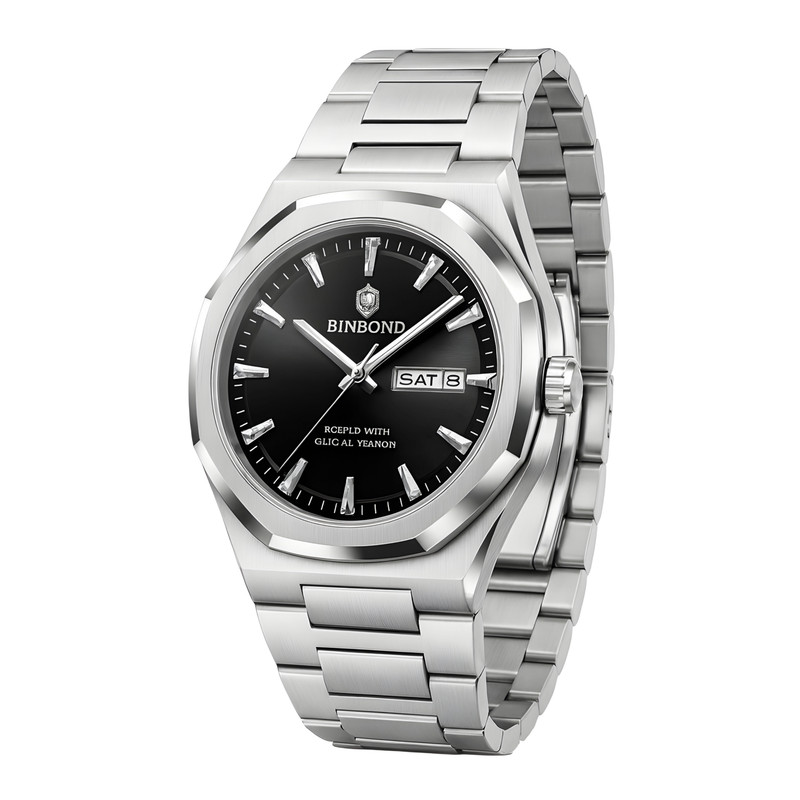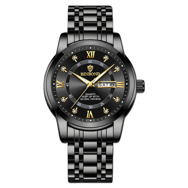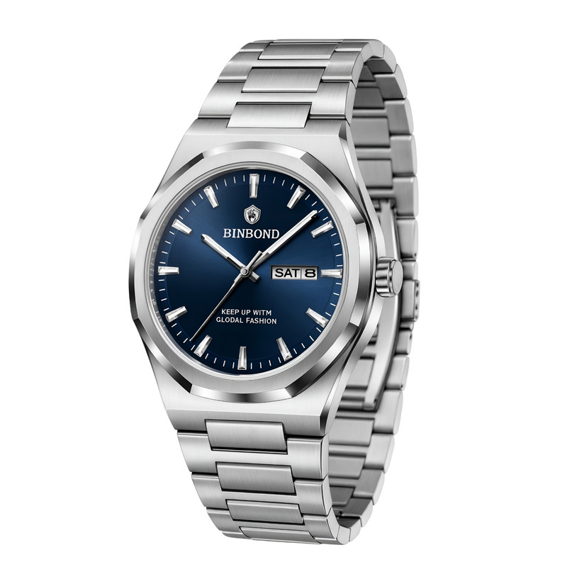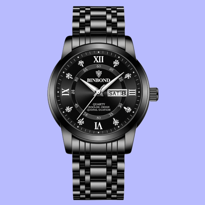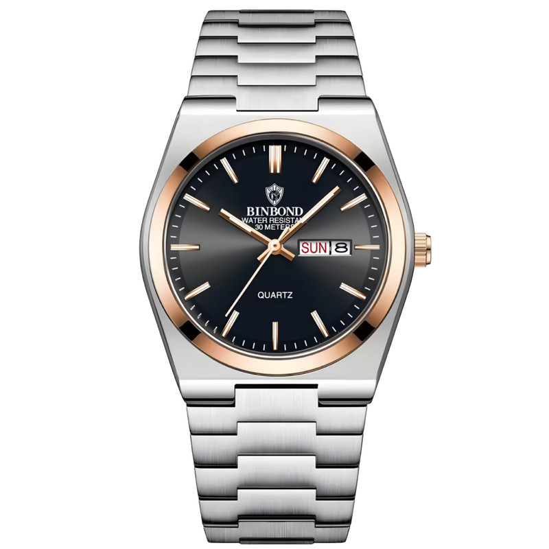 ساعت مچی عقربه‌ای کوارتز مردانه بین باند مدل لوکس کلاسیک اسپرت بند استیل قفل مخفی کد B1.1