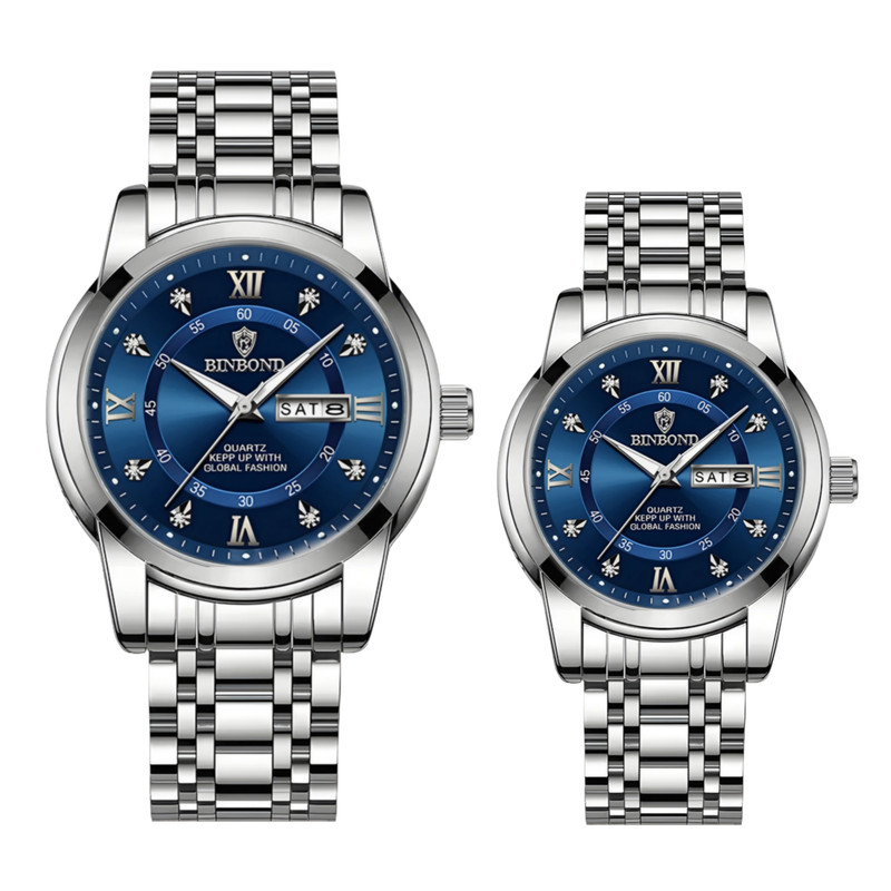 ست ساعت مچی زنانه و مردانه بین باند مدل کوارتز کلاسیک دی دیت بند استیل طرح الماسی کد ۱.۲ناموجود