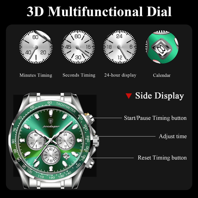 کرنوگراف , نمایش 24 ساعته , عقربههای شبتاب , تاریخ شمار