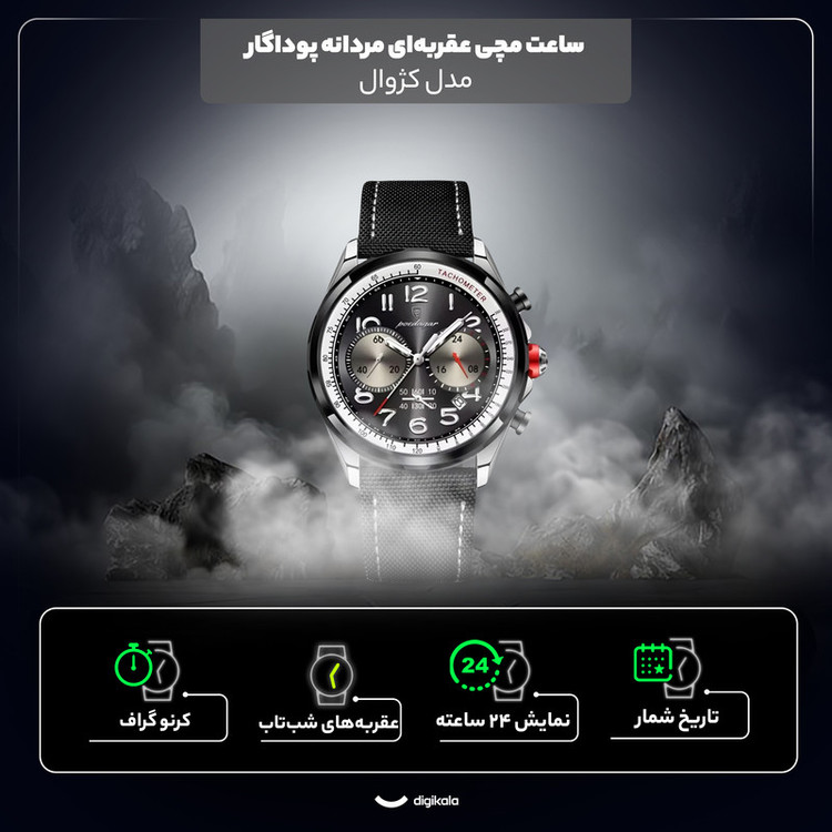 ساعت مچی عقربهای کوارتز مردانه پوداگار مدل سه موتور فعال کرنوگراف کد 01