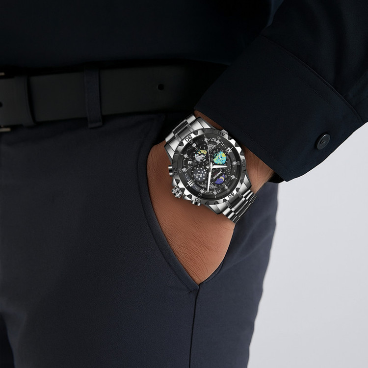 اگر بهدنبال یک ساعت مچی با طراحی مدرن، کیفیت قابل اعتماد و عملکرد دقیق هستید، ساعت مچی عقربهای مردانه کوارتز بین باند میتواند انتخابی هوشمندانه باشد. بدنه و بند استیل این مدل با رنگ مشکی براق، نمایی لوکس و حرفهای به آن بخشیدهاند که بهراحتی با استایلهای رسمی، فشن یا روزمره هماهنگ میشود. صفحه گرد و مشکی با طراحی خاص، جلوهای متفاوت و متمایز به این ساعت داده است. شیشه معدنی مقاوم در برابر ضربه و خطوخش، در کنار بند فلزی مستحکم با انعطافپذیری مناسب، دوام و راحتی را همزمان فراهم کردهاند. وزن ساعت نیز بهگونهای متعادل طراحی شده تا در استفاده طولانیمدت، احساس سنگینی یا ناراحتی ایجاد نکند. موتور کوارتز دقیق این مدل، با منبع انرژی باتری، زمان را با پایداری بالا نمایش میدهد و نیاز به تنظیم مداوم را از بین میبرد. همچنین مقاومت در برابر آب، استفاده از ساعت را در شرایط روزمره مانند شستوشوی دست یا قرار گرفتن در معرض رطوبت ساده و بیدردسر میسازد.
