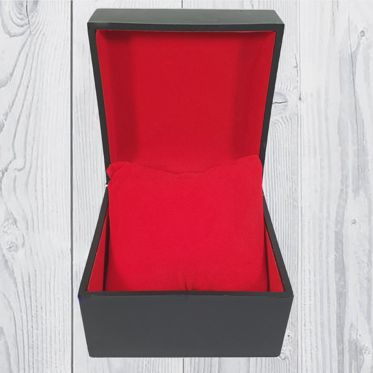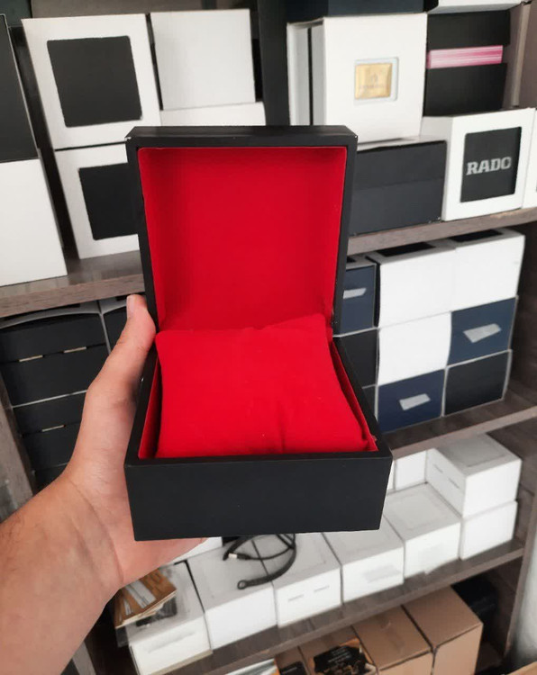 بدنه این جعبه از pvc ساخته شده و داخل آن نیز با پارچه مخملی روکش شده است، این جعبه دارای یک عدد بالشتک مخصوص برای قرار دادن ساعت است. از این جعبه میتوان هم به عنوان جعبه جواهرات و زیورآلات و هم به عنوان جعبهای ایمن جهت نگهداری از ساعت استفاده کرد. استفاده از این جعبه جهت اهدای کادو و هدایایی از قبیل ساعت، زیورآلات، جواهرات و ... به دوستان و عزیزان گزینه مناسب و شایستهای است.
