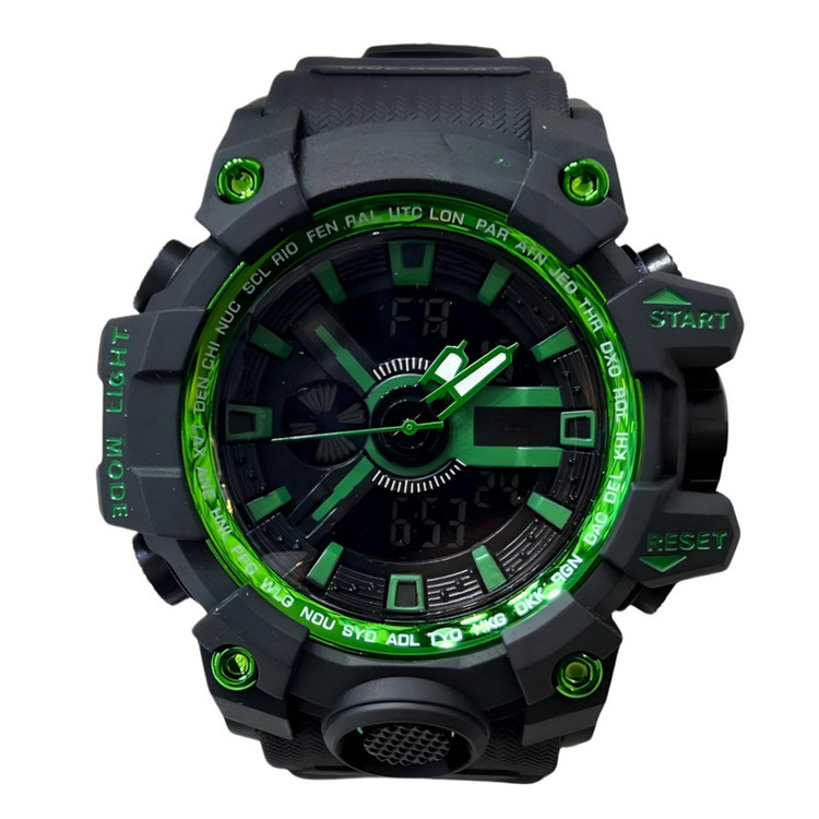 نمایش 24 ساعته , نمایش ساعت دوم , تاریخ شمار , نور پس زمینه , آلارم , کرنوگراف