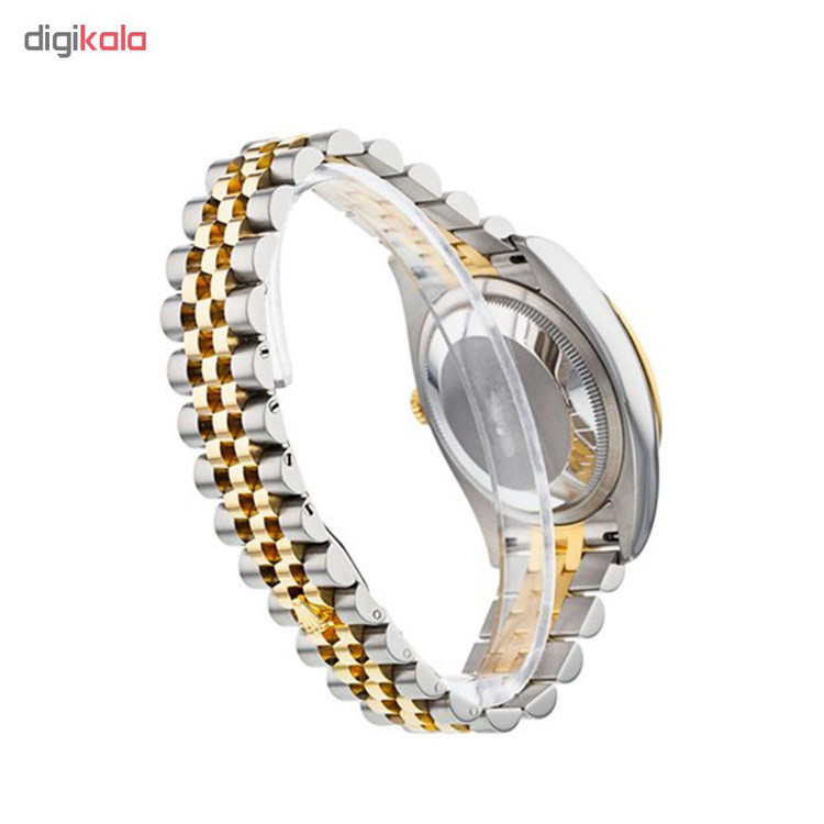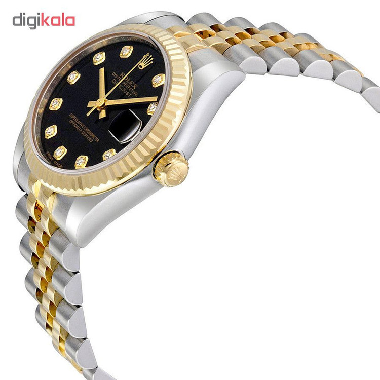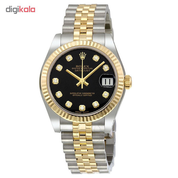 ساعت DATEJUST به لطف زیبایی و کارکرد خود ورای تغییرات مد است. قاب در این مدل با قطر 28 میلی متر در رنگ نقره ای طراحی شده که برای خانم ها اندازه مناسبی محسوب می شود. دور قاب اما با طراحی شیاردار و به رنگ طلایی است. صفحه ی مشکی این ساعت زنانه که بر روی آن نمایشگر های ساعت جواهر نشان نقش بسته است. بر روی صفحه ی ساعت نمایشگر تاریخ در موقعیت ساعت 3 قرار گرفته است که یک عدسی سیکلوپس برای بهتر دیده شدن اعداد روزشمار بر روی آن قرار گرفته است. جنس شیشه از مرغوب ترین نوع شیشه معدنی ساخته شده است. نوع بند در این مدل جوبیلی 5 تیکه است که به دلیل فرم پذیری زیاد برای استفاده روزمره راحت و مناسب است. تمام جزئیات در نسخه ی ارجینال این ساعت با ظرافت قابل توجهی رعایت شده است و استفاده از متریال مرغوب و موتور ژاپنی باعث شده این ساعت از نظر کارآیی هم کاملا در حد قابل قبولی باشد. بدنه و بند سبک، ضد حساسیت و رنگ ثابت همچنین قاب و شیشه ی ضد خش و مقاوم در برابر آب، موتور و باتری درجه یک و البته طراحی اغوا کننده این ساعت، می تواند تمام آن چیزی باشد که باعث رضایت دارنده ی آن شود.