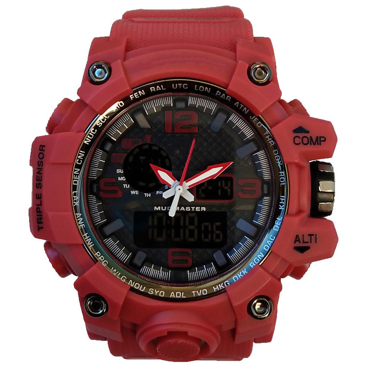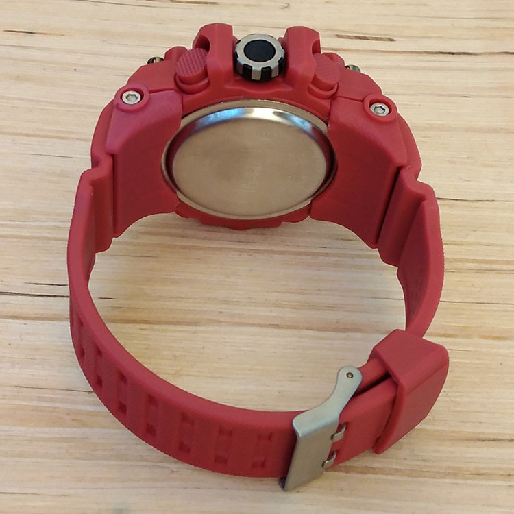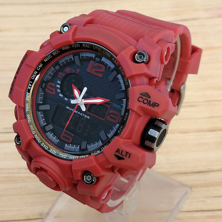 ابعاد بدنه : 50x50x18 میلیمتر عرض بند : 22 میلیمتر دو زمانه ( آنالوگ و دیجیتال ) ضد ضربه پشت(چهار پیچ) دارای آلارم کرنومتر تاریخ و روزشمار چراغ دید در شب