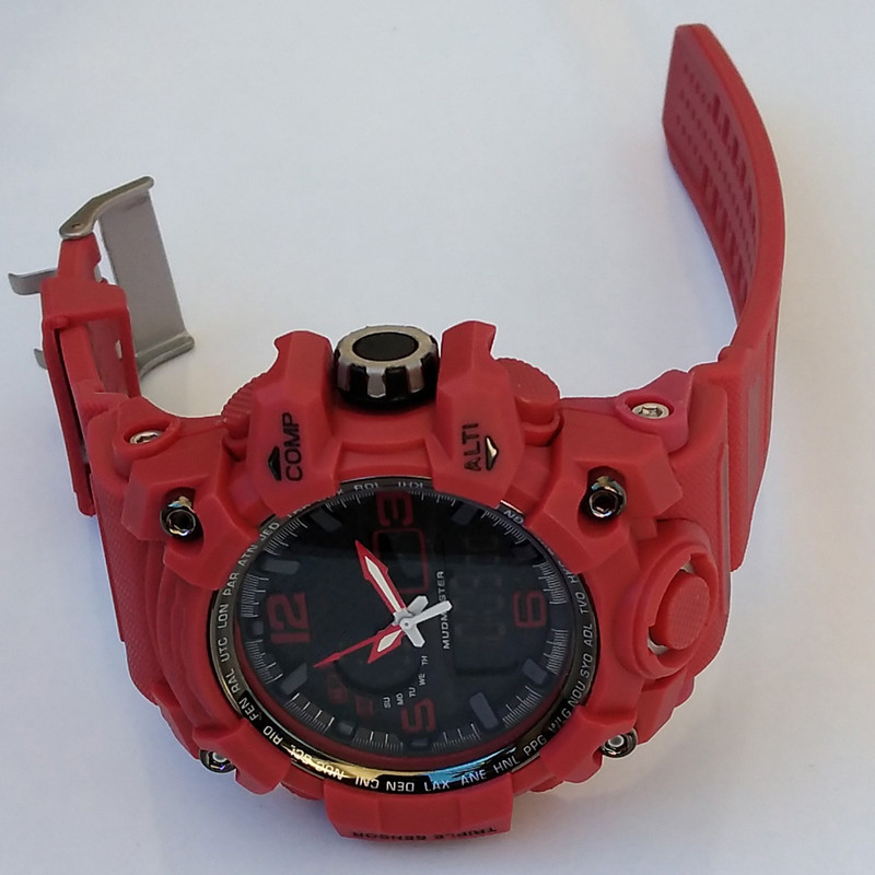 ابعاد بدنه : 50x50x18 میلیمتر عرض بند : 22 میلیمتر دو زمانه ( آنالوگ و دیجیتال ) ضد ضربه پشت(چهار پیچ) دارای آلارم کرنومتر تاریخ و روزشمار چراغ دید در شب