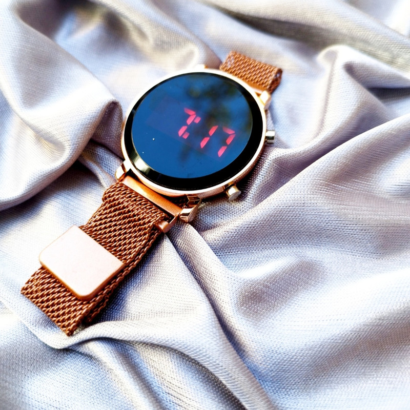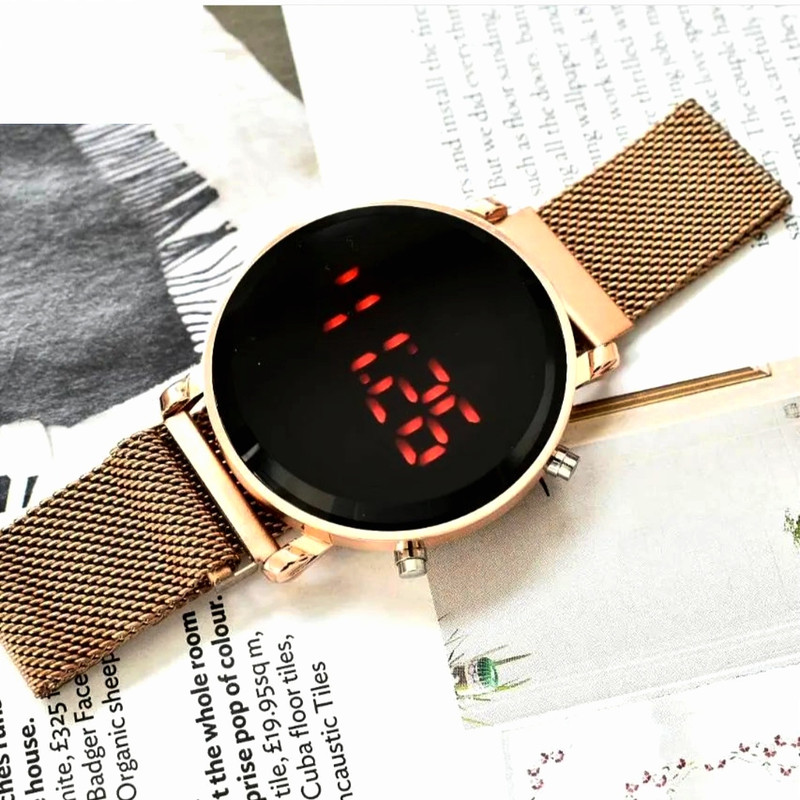 گالری ما همیشه تلاش میکند بهترین کیفیت را با کمترین قیمت به شما عزیزان عرضه کند که این ساعت یکی از شیک ترین و پر طرفدار ترین ساعت های گالری ما است و سایز متوسط و اسپرتی دارد و جنس بند حصیری آن از پیو ضد حساسیت است و نور ال ای دی آن قرمز بوده و قفل مگنتی زیبا در آن به کار رفته است و همراه یک جعبه زیبا برای شما عزیزان ارسال میشود