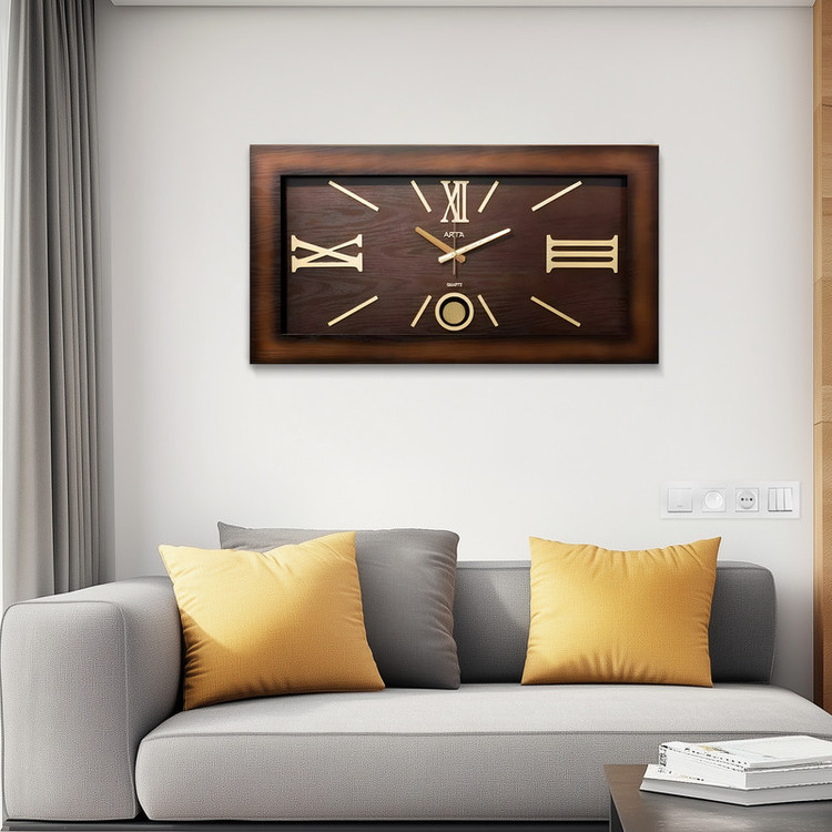 ساعت دیواری ارتا کد 116 با ظاهری جذاب و ابعاد 120در 60 سانتی متر می باشد جنس این ساعت چوبی دارای موتور ارام گرد تایوان و پاندول دار می باشد تنوع رنگ این ساعت قهوه ای سفید و طوسی است