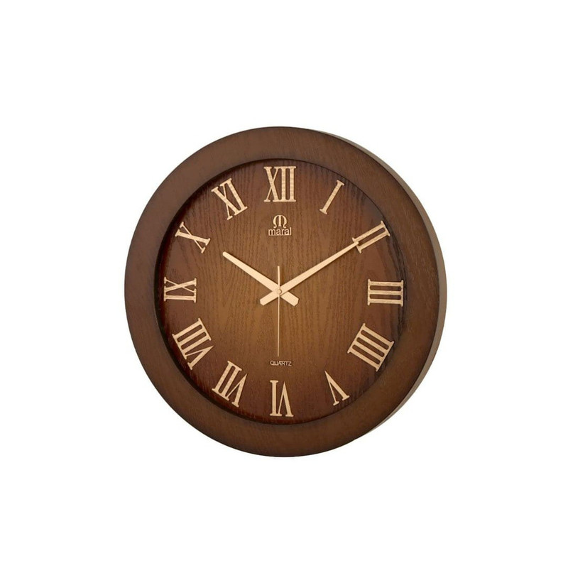 این ساعت دیواری مارال مدل هجده دارای صفحه و اعداد برجسته چوبی و قاب آن پلاستیک می باشد که در تنوع رنگ قهوه ای و سفید و در اعداد یونانی و رومی عرضه می شود