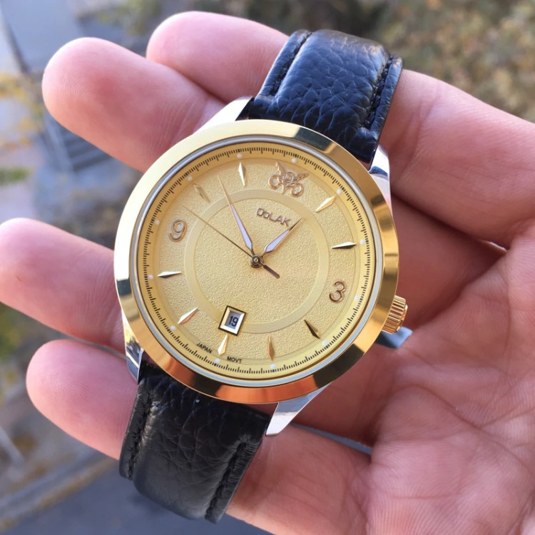 ساعت مچی عقربه ای مردانه اوبلاک مدل 72699رنگ دورنگ صفحه زرد