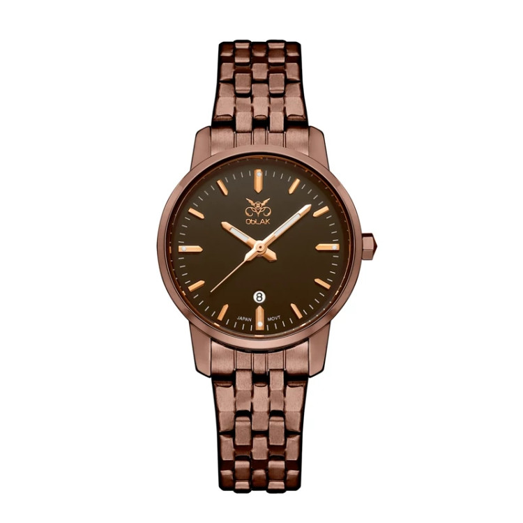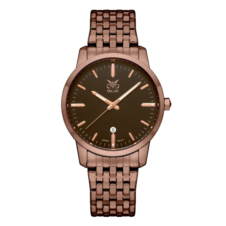 ست ساعت مچی عقربه ای زنانه و مردانه اوبلاک مدل 72701 رنگ کافی صفحه کافی