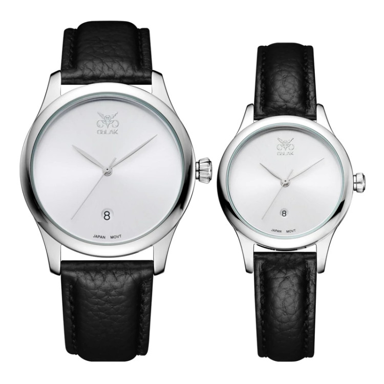 ست ساعت مچی عقربه ای زنانه و مردانه اوبلاک مدل 72702 رنگ استیل صفحه سفید