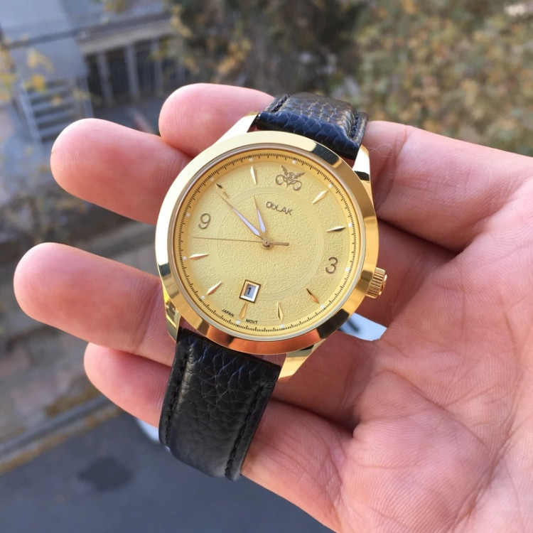 ساعت مچی عقربه ای مردانه اوبلاک مدل 72699رنگ طلایی صفحه زرد