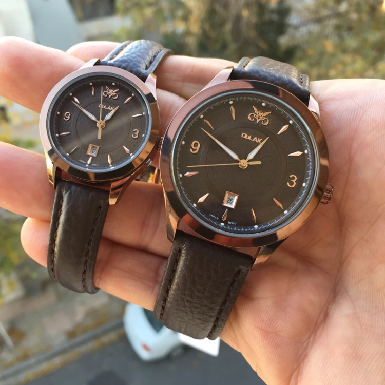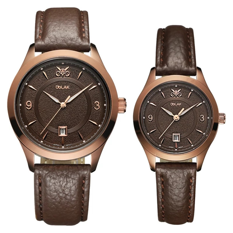 ست ساعت مچی عقربه ای زنانه و مردانه اوبلاک مدل 72699 رنگ کافی صفحه کافی