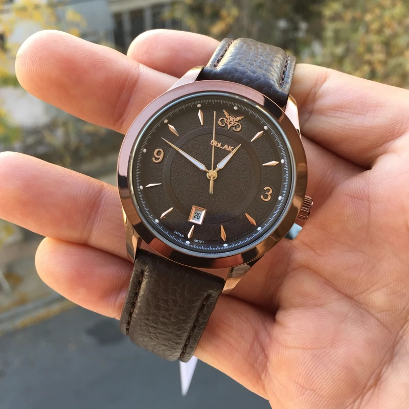 ست ساعت مچی عقربه ای زنانه و مردانه اوبلاک مدل 72699 رنگ کافی صفحه کافی