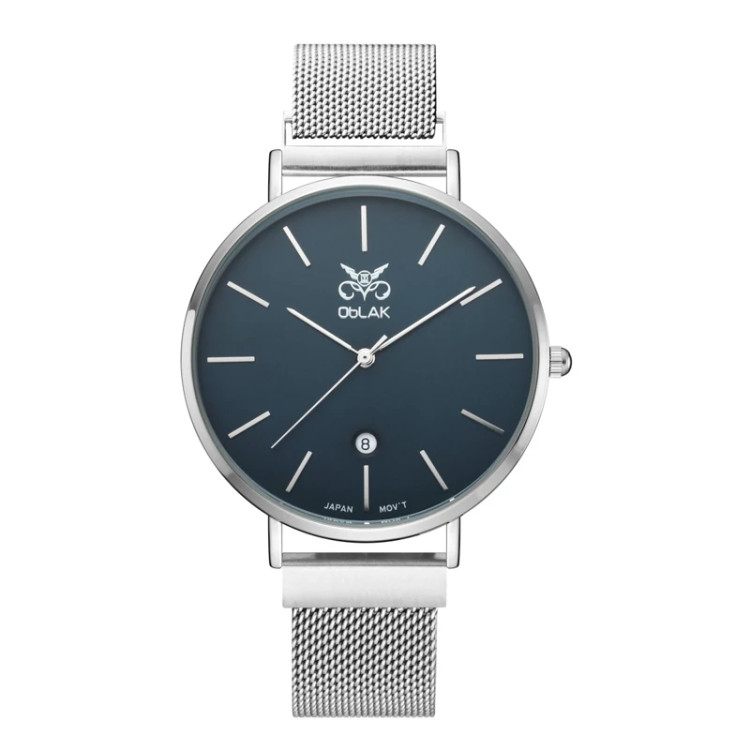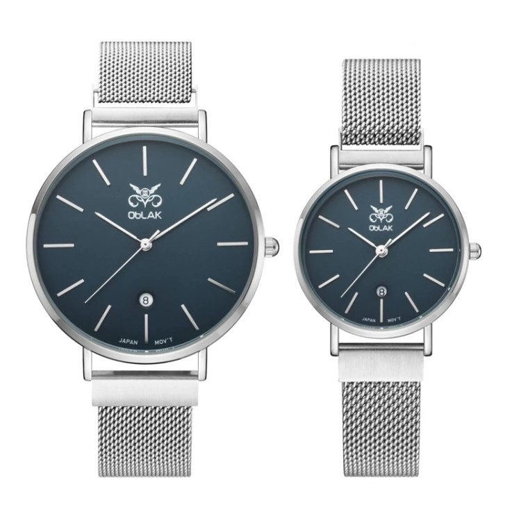 ست ساعت مچی عقربه ای زنانه و مردانه اوبلاک مدل 72704 رنگ استیل صفحه سورمه ای
