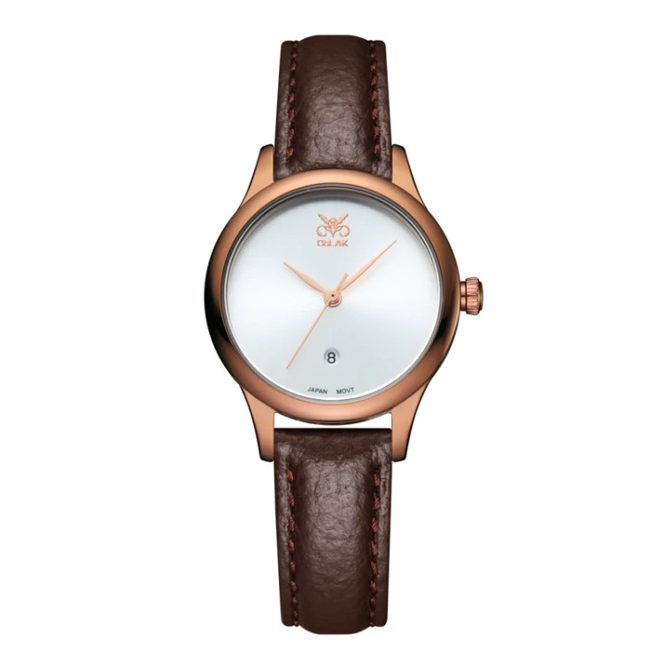 ساعت مچی عقربه ای زنانه اوبلاک مدل 72702 رنگ کافی صفحه سفید