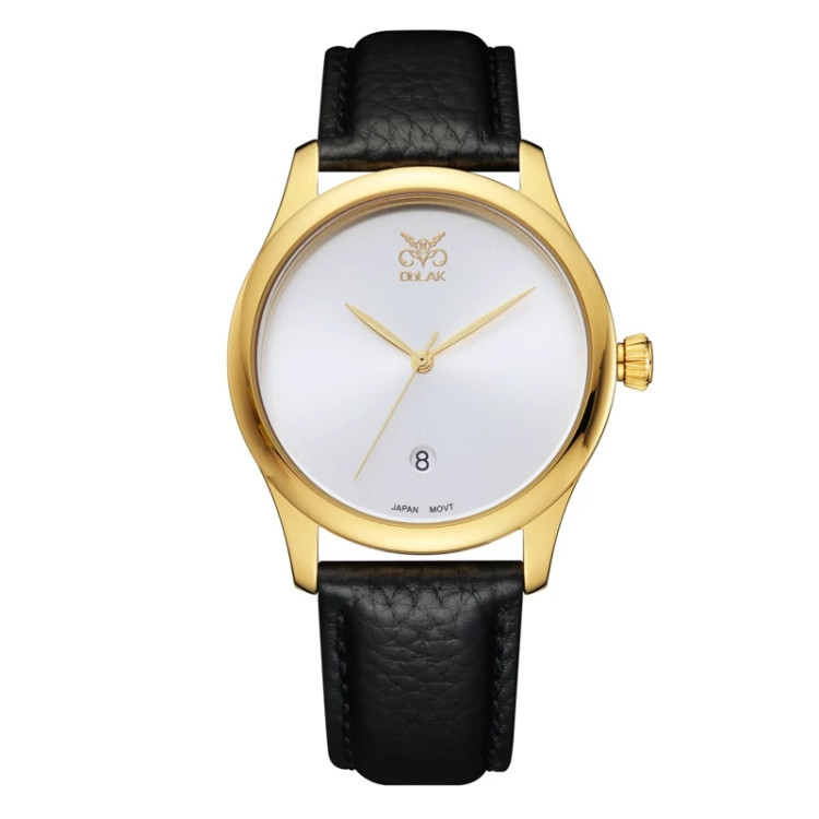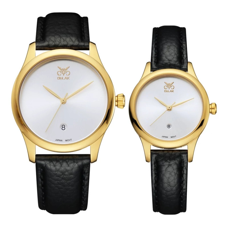 ست ساعت مچی عقربه ای زنانه و مردانه اوبلاک مدل 72702 رنگ طلایی صفحه سفید