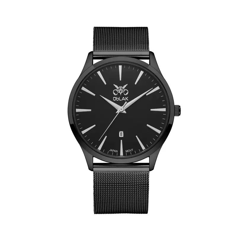 ست ساعت مچی عقربه ای زنانه و مردانه اوبلاک مدل 72714 رنگ تیتان صفحه مشکی