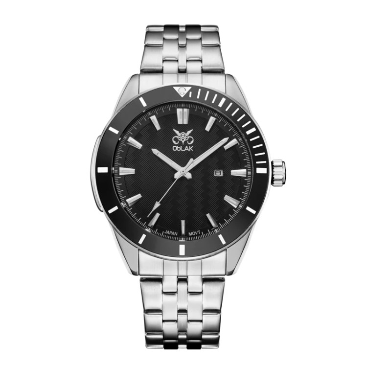 ساعت مچی عقربه ای مردانه اوبلاک مدل 72719 رنگ استیل صفحه مشکی