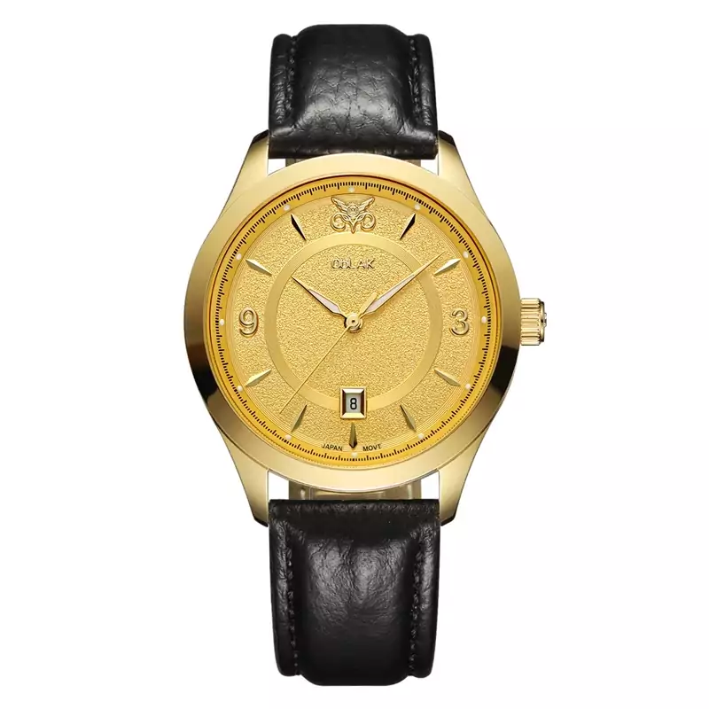 ست ساعت مچی عقربه ای زنانه و مردانه اوبلاک مدل 72699 رنگ طلایی صفحه زرد