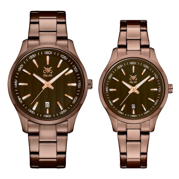 ست ساعت مچی عقربه ای زنانه و مردانه اوبلاک مدل 72703رنگ کافی صفحه کافی