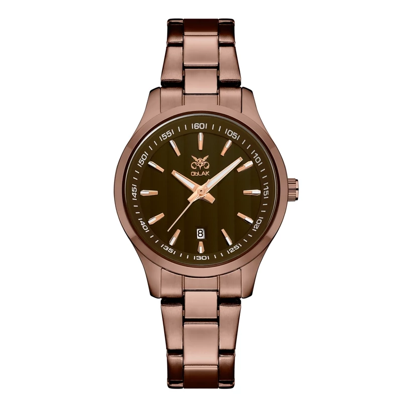 ست ساعت مچی عقربه ای زنانه و مردانه اوبلاک مدل 72703رنگ کافی صفحه کافی