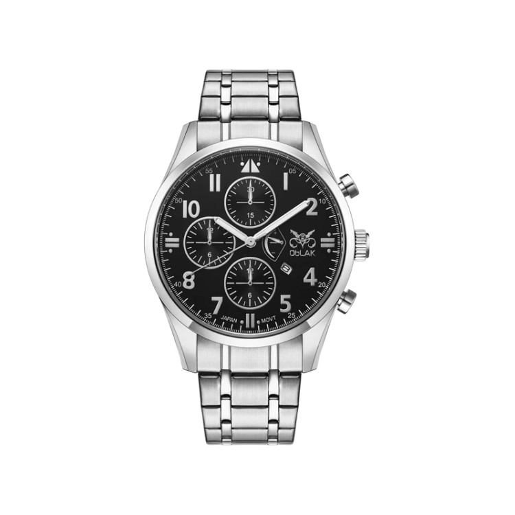 ساعت مچی عقربه ای مردانه اوبلاک مدل 72718 رنگ استیل صفحه مشکی