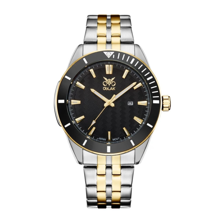 ساعت مچی عقربه ای مردانه اوبلاک مدل 72719 رنگ دو رنگ صفحه مشکی