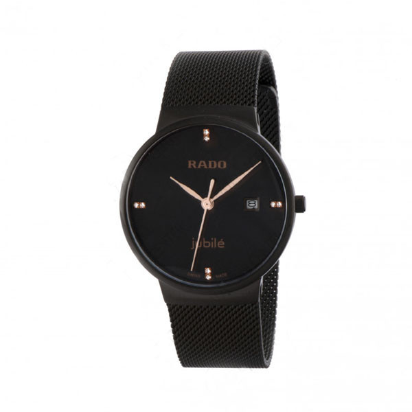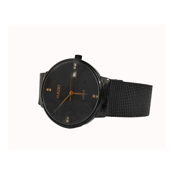 ساعت بند حصیری رادو های کپی مدل Rado Jubbile 152 محصول ست زنانه و مردانه با بند فلزی حصیری که در دسته ی ساعت های کلاسیک قرار دارد،.دارای نشانگر تاریخ .رنگ بندی این ساعت مچی مشکی است اما قابل سفارش در رنگ بندی مشکی طلایی نیز می باشد.