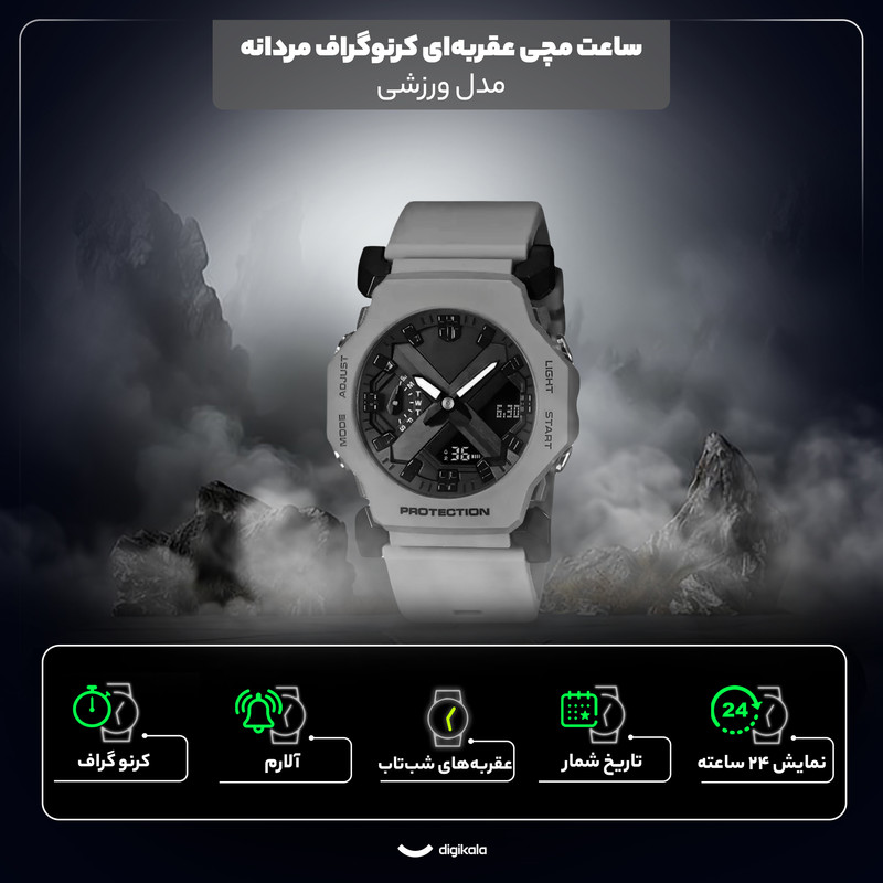 تاریخشمار , عقربههای شبتاب , آلارم , کرنوگراف , نمایش 24 ساعته